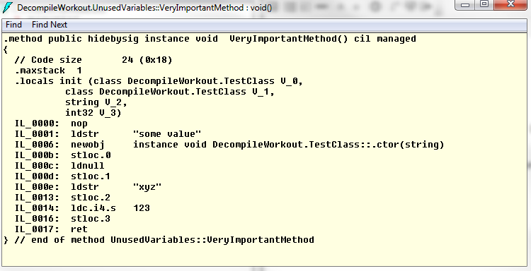 I’m no expert in reading IL code but it’s obvious in the locals section there are 2 TestClass instances, a string and a integer.