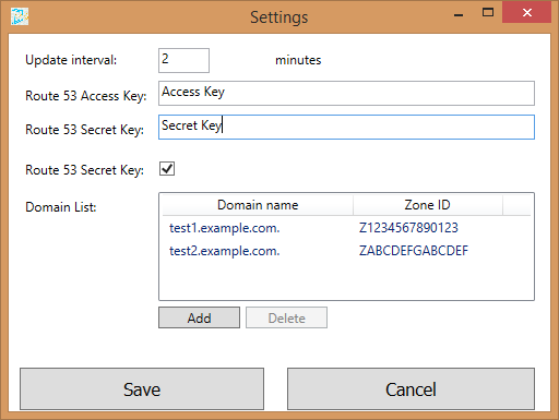 The project has a WPF user interface and a Windows service. Both are using the same library (DynDns53.Core) so the functionality is the same. Using the user interface is pretty straightforward.