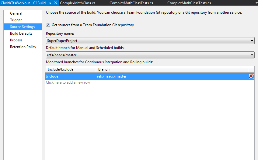 I chose Git as the version control system. If you use TFSVC the terminology you’ll see is a bit different but since the main focus of this post is establishing continuous integration it doesn’t matter much as long you as you can check-in the source code.