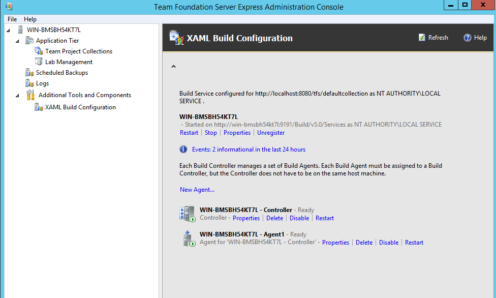 Default configuration installs one build controller and one agent for the Default Collection so for this project we don’t have to do add or change anything.