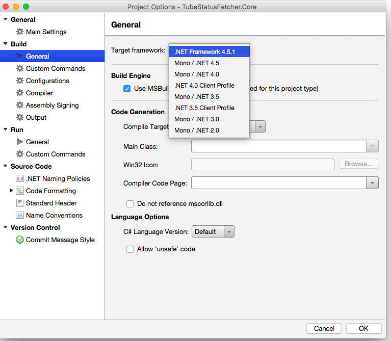 It didn’t work out of the box because I used C# 6.0 and .NET Framework 4.5.2 on the Windows side but it wasn’t available on the Mac.