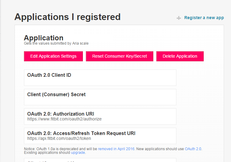 Like MS Health API, FitBit uses OAuth 2.0 authorization and requires a registered application.