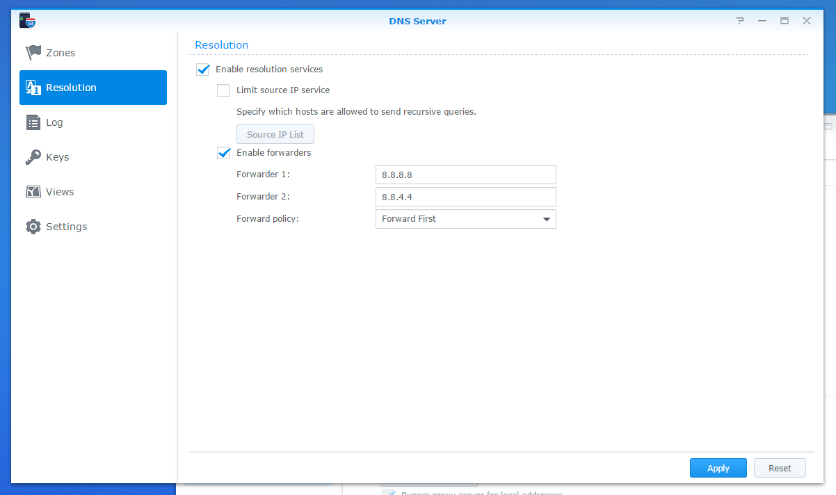 Step 04: For all the domains that my DNS server didn’t know about (which is basically everything else!) I needed to forward the requests to “actual” DNS servers. In my case I use Google’s DNS servers so I entered those IPs as forwarders.