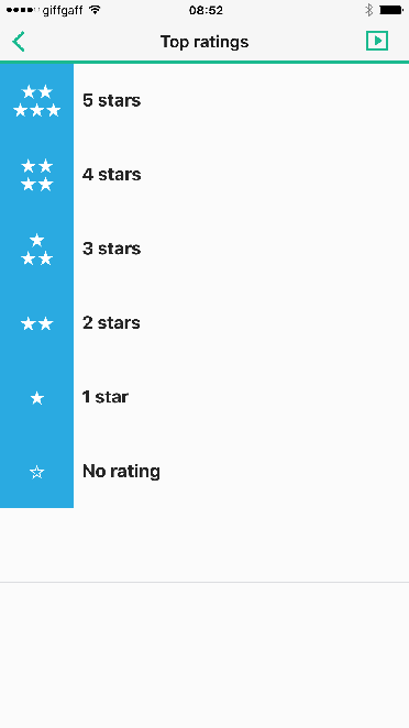 - You can rate songs. There’s a built-in Top Rated playlist. By rating them you can play your favourite songs without needing them to be added to playlists which is a neat feature.