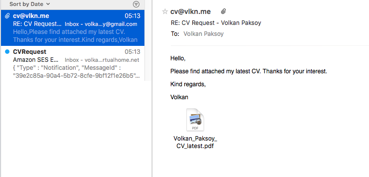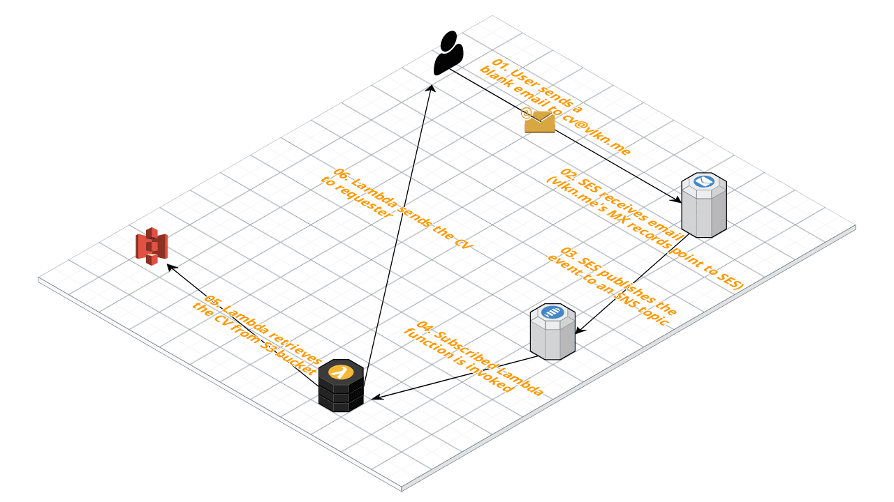 As a demo project I will build a system that automatically responds to a sender with my latest CV as shown in the diagram below