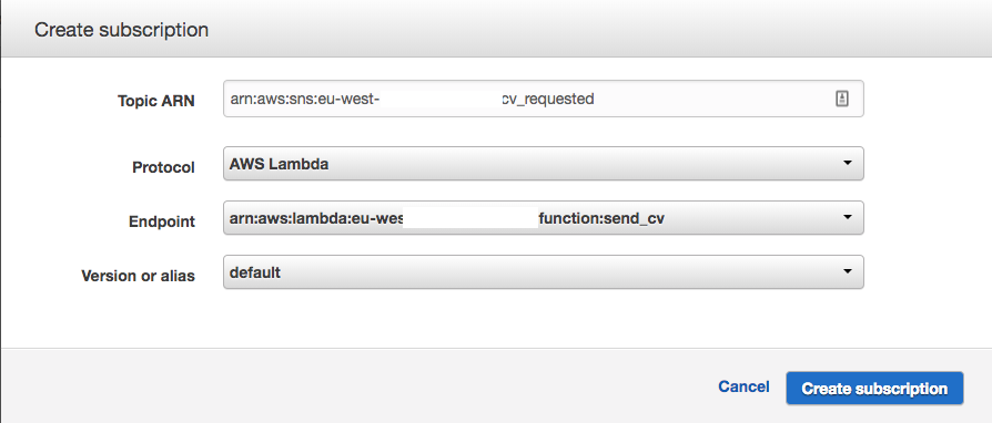 - Step 2.3: Create subscription for the Lambda function to SNS topic