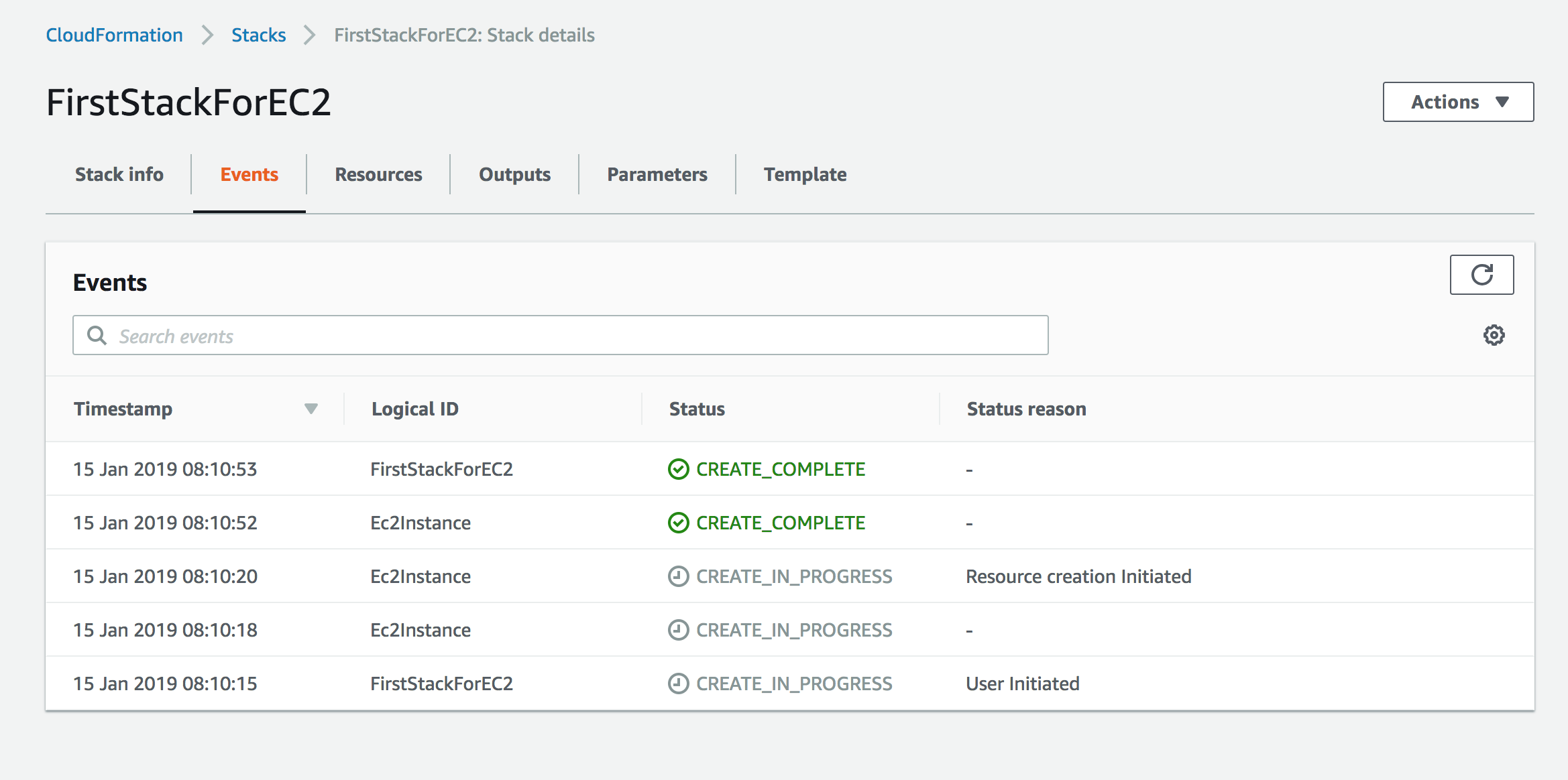 At this point you can observe the progress of your stack being created.