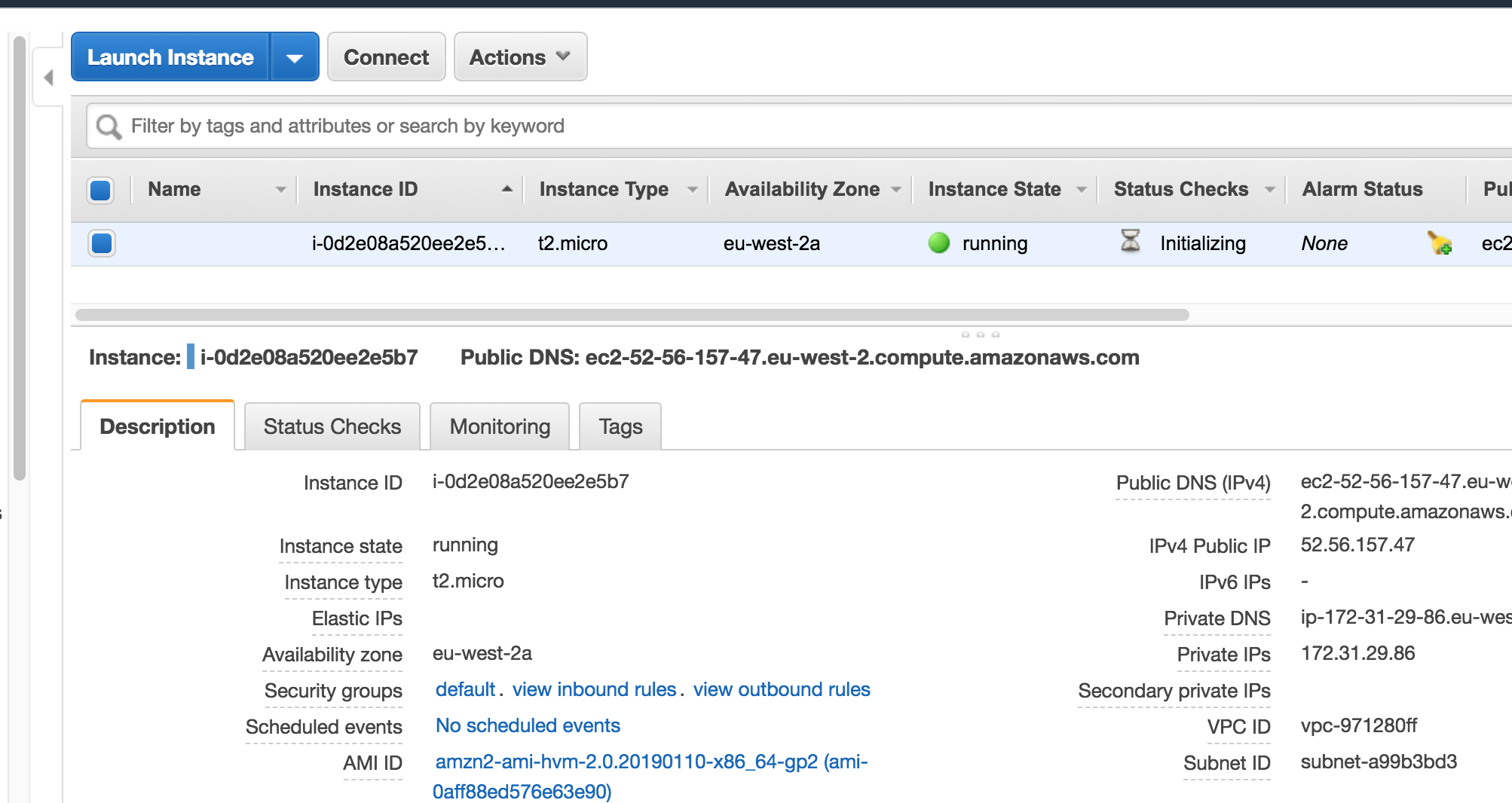 In the example above I’m using a stock AWS Linux AMI in London region.