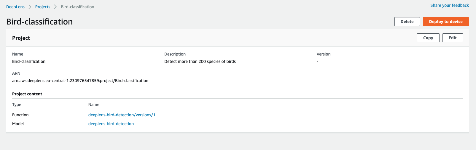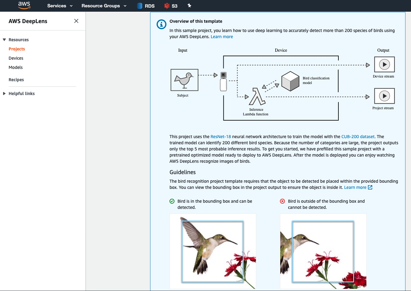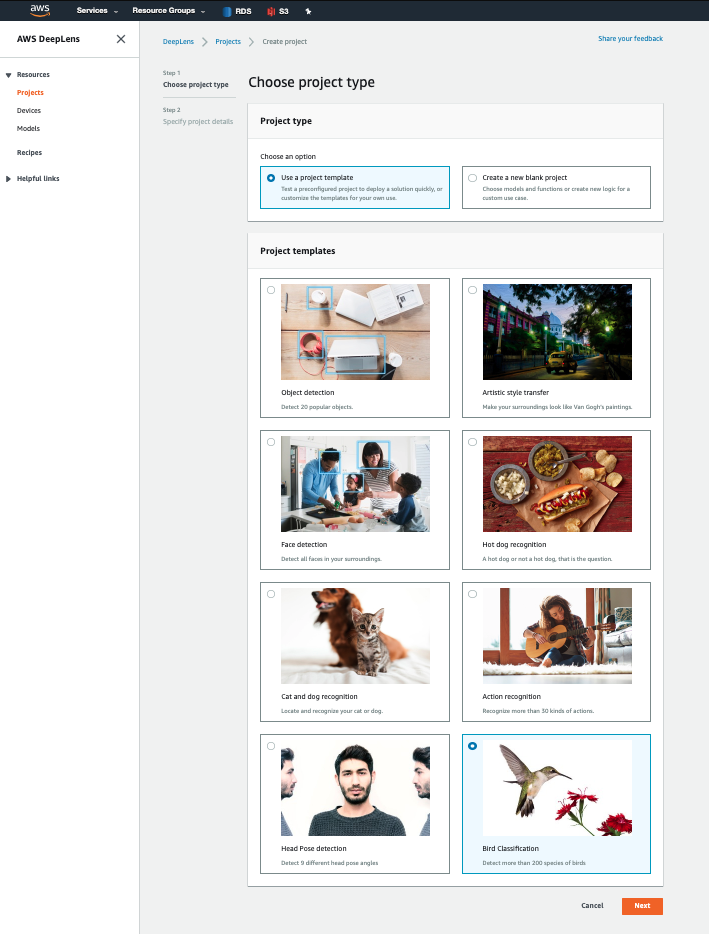 Now that the devices is ready, I went to Projects section and created a new project based on a template. For this initial exploration mission I chose Bird Classification template.