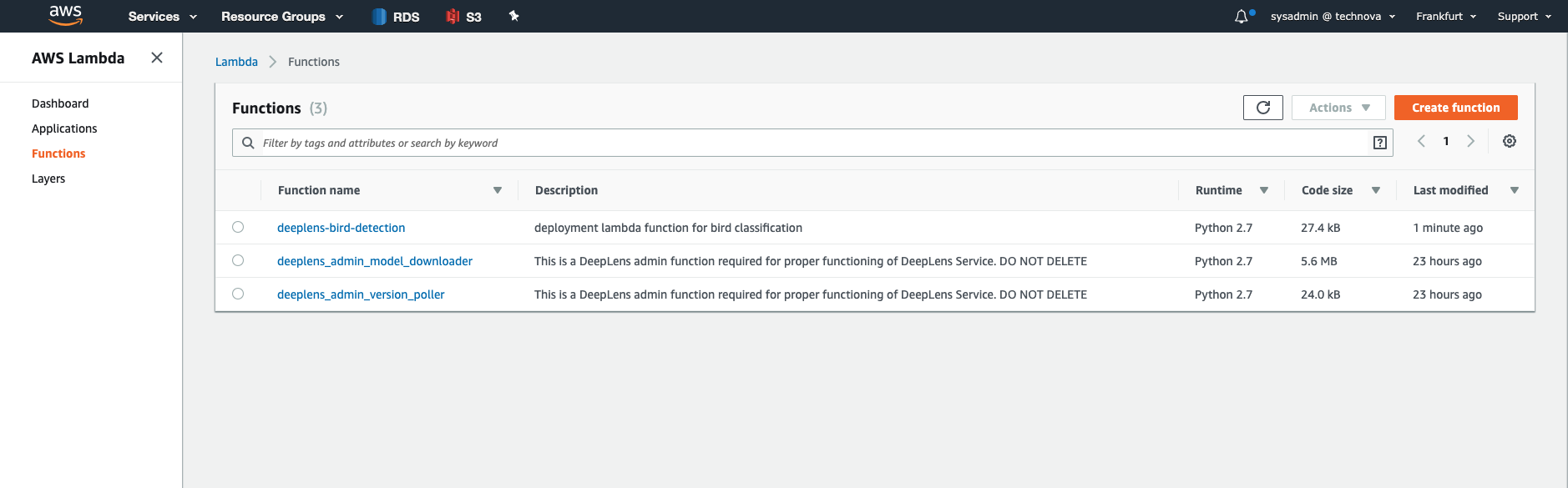 Alternatively, you can log in to AWS Console, go to AWS DeepLens service and click Register Device. As of this writing this service is only available in Tokyo, N.Virginia and Frankfurt. As closest to me is Frankfurt I chose that one.
