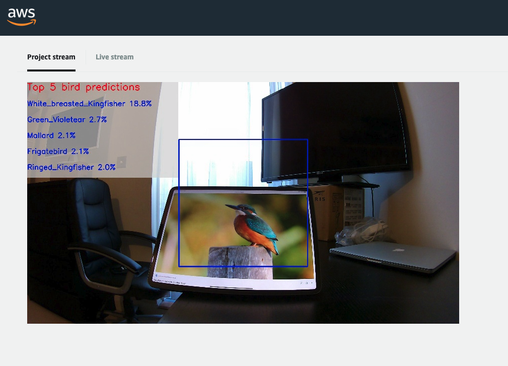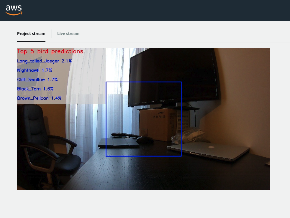 Because DeepLens doesn’t know if there’s a bird or not in the picture it constantly makes a guess. Even an empty carton box looks like a Long Tailed Jaeger with 2.1% confidence apparently!