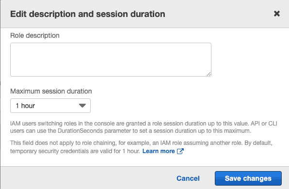 By default, the temporary credentials are valid for 1 hour. You can change this value in the role settings by clicking the Edit button in the role summary section.