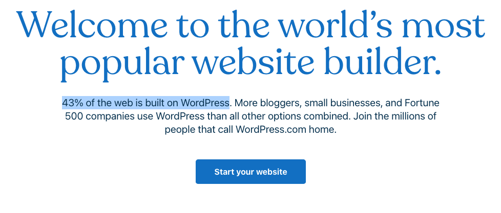 According to WordPress’s official site, WordPress is used by 43% of all websites on the Internet.